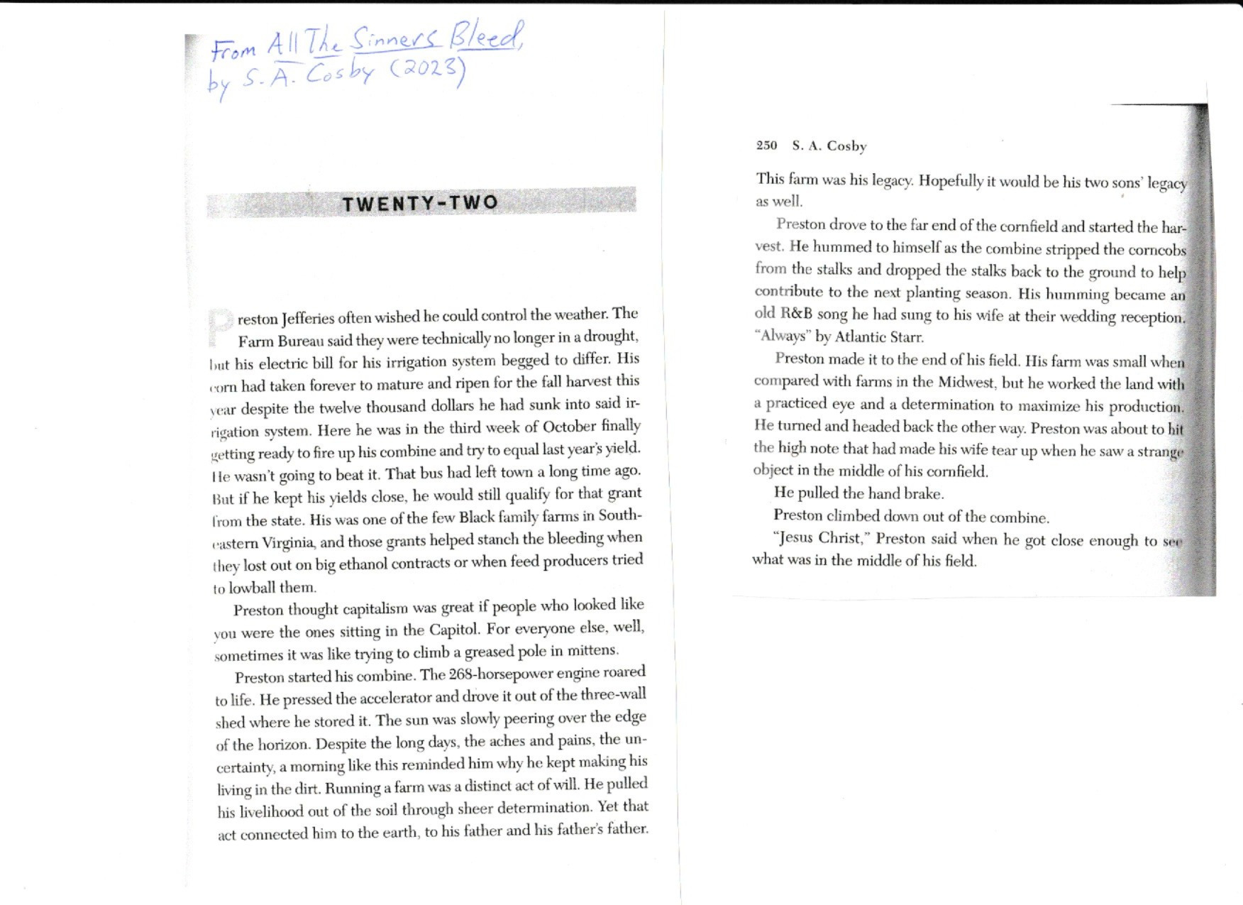 Character snippet from All The Sinners Bleed by S. A. Cosby