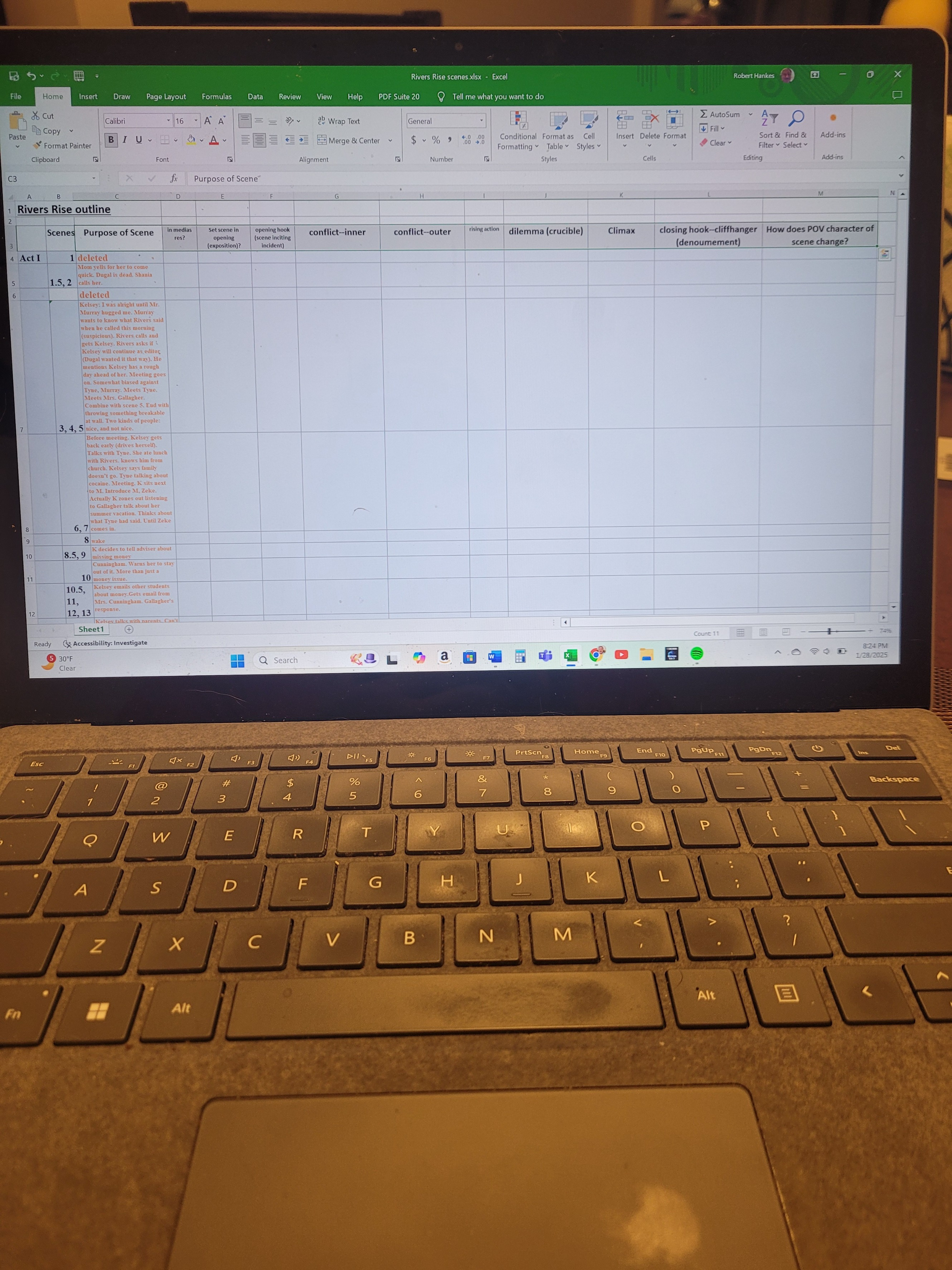Yesterday I created a large spreadsheet using Excel so that I could figure out how many scenes were told from the point of view of Kelsey Webb.